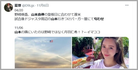 わざわざ山本さんの登板日に合わせて渡米することをインスタグラムストーリーに投稿したことで「匂わせ」と噂になってしまったようですね。