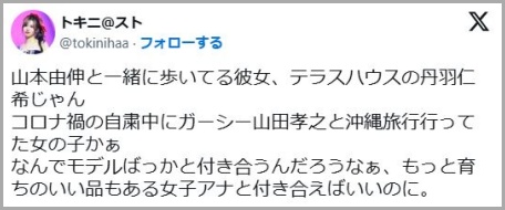 ですが、そんな山本由伸さんについて、「モデルでタレントのNikiこと丹羽仁希と交際中?」という噂があるようです。