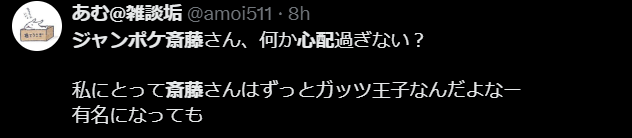 斎藤さんの健康を第一に考えつつ、彼の笑顔が再び見られる日を待ち望むしかありません。